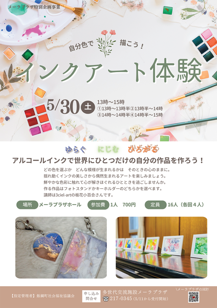 「自分色で描こう!インクアート体験」を5月30日(土)に開催します。